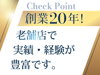 創業20年!老舗店で実績・経験が豊富です。リピーター様も多く、質の良い客層と安定した稼ぎをお約束いたします。