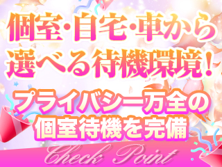 個室・自宅・車から選べる待機環境!プライバシー万全の個室待機を完備。もちろん自宅や車での待機も可能です!