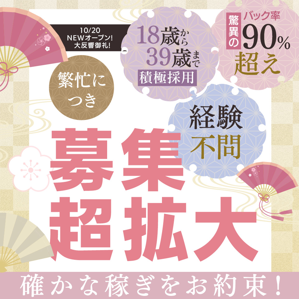 YESグループから新店OPEN✨和風コンセプト店👘フリーサイズの衣装で体型に自信がなくてもOK!スタッフ常駐&完全個室待機&顔出しなしOK◎ストレスフリーの環境✨
