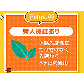 入店から3か月間の新人保証、また入店後は片番最大70,000円の永久保証をご用意しております。