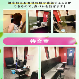 待合室のマジックミラーでお客様の雰囲気を事前に把握!身バレの心配なく働ける!お仕事兼待機部屋で女の子同士の顔合わせなし!各部屋シャワールーム完備☆