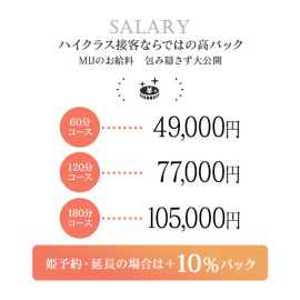 もともとお給料も高めで設定していおりますが、当日延長の場合や後日、改めて姫予約でお仕事に入って頂いた場合は、バックが+10%となります('-'*)