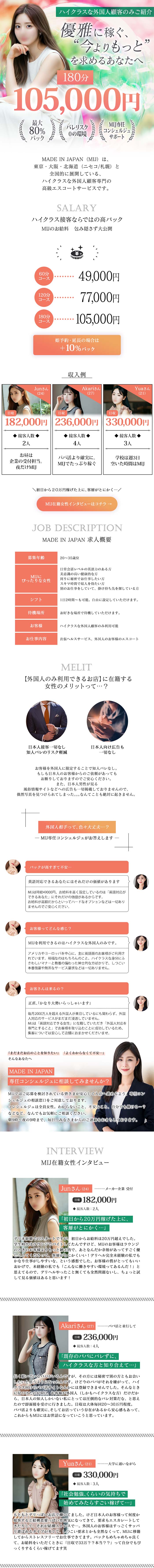 接客は【ハイクラスな外国人顧客のみ】日本人のお客様はご利用をお断りしております◎バレを気にせず安心して在籍できるMIJです