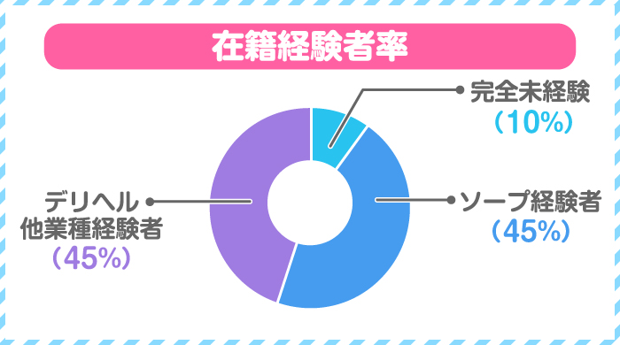 佐藤さん- ソープからソープへの移籍と、ヘルスなど他業種からの移籍の割合は、ほぼ半々といったところです。未経験者はごくわずかで、業界経験者が大半を占めています。