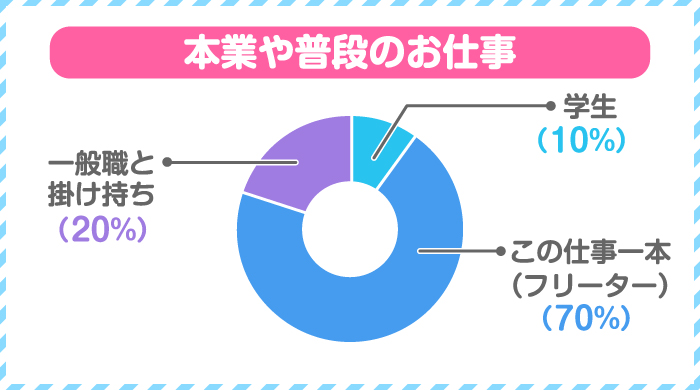 佐藤さん- 一番多いのはフリーターの方ですね。この仕事一本で生計を立てている方が全体の約7割を占めます。