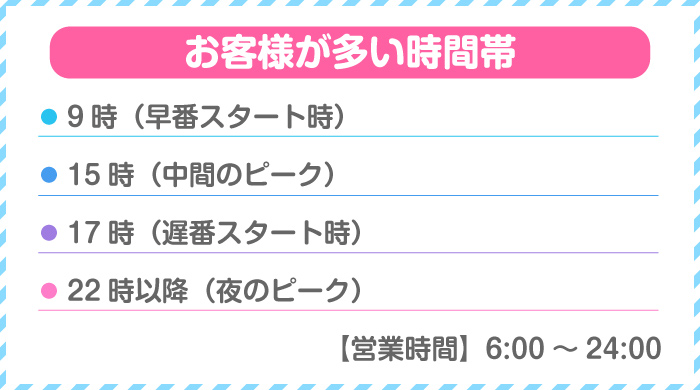 Mさんー そこは安心してください。新人さんに関しては、最初のうちはある程度優遇して、本人の希望通りに出勤できるように調整しています。「最初からシフトを絞られる」といったことはありません。