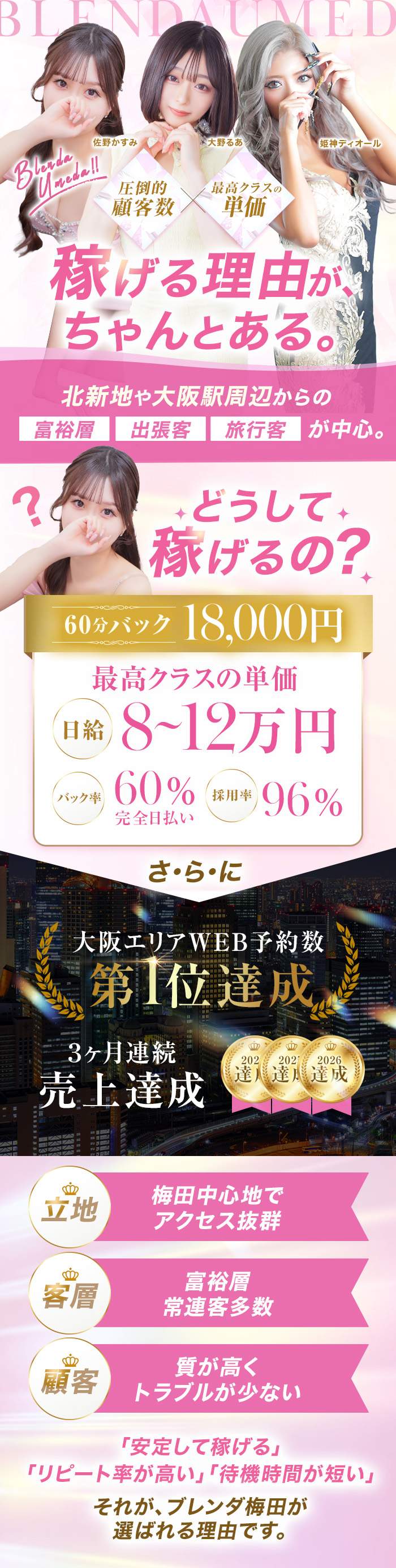 💵1日【20万円】稼げる!◆女の子の不安は【ブレンダ梅田が解消✨】◆採用基準はたった《2つ》?!