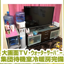 • 広めのお部屋で集団待機で使用して頂けます。DVDプレイヤー・ゲーム機・洗濯機や、レンジなどの家電も完備★