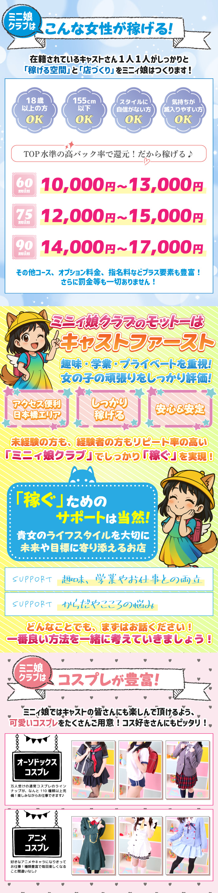 小柄が稼ぐ武器になる!身長155センチ以下なら、まずはそれを活かして一番お得に稼げる『ミニィ娘くらぶ』へ!専門店だから高給料&高マッチング率&高リピート率で安定した高収入!