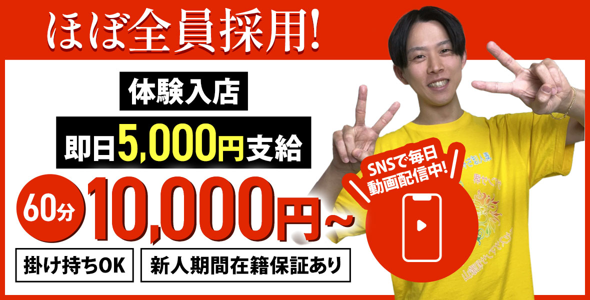 \採用率99%!容姿不問で採用します!/ほぼ全員採用▶未経験・出稼ぎ・地元の方も安心して働けるお店です♥即日体験入店実施中!待機所あり・完全送迎・寮完備など待遇充実♪ぜひお気軽に!