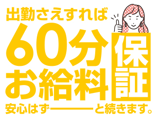 最低60分コース分のお給料保証制度がスタート!出勤さえすれば必ず保証されるので、安心がずーっと続きます!お給料は日払い♪
