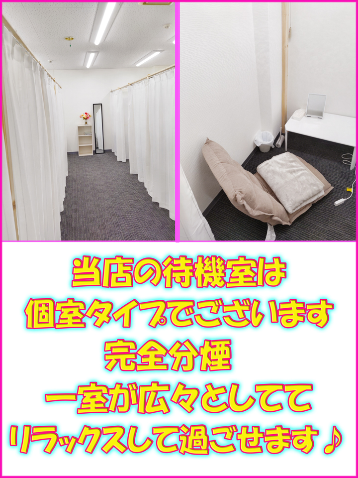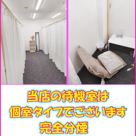 出来立てほやほやの綺麗で広々とした完全個室待機室をご用意しています!