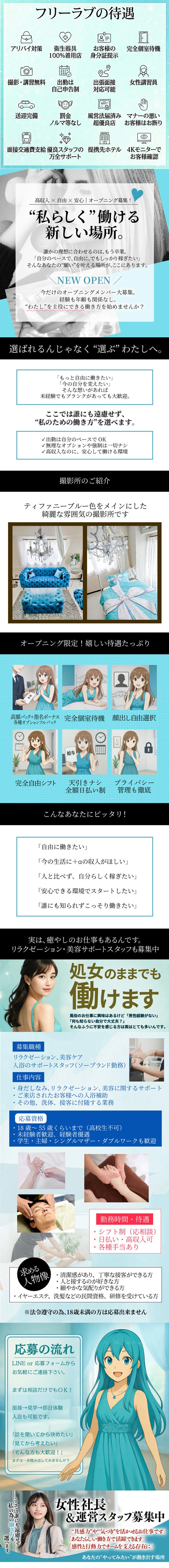 「処女のままでも働けます!」▶リラクゼーション・美容サポートスタッフも募集中!