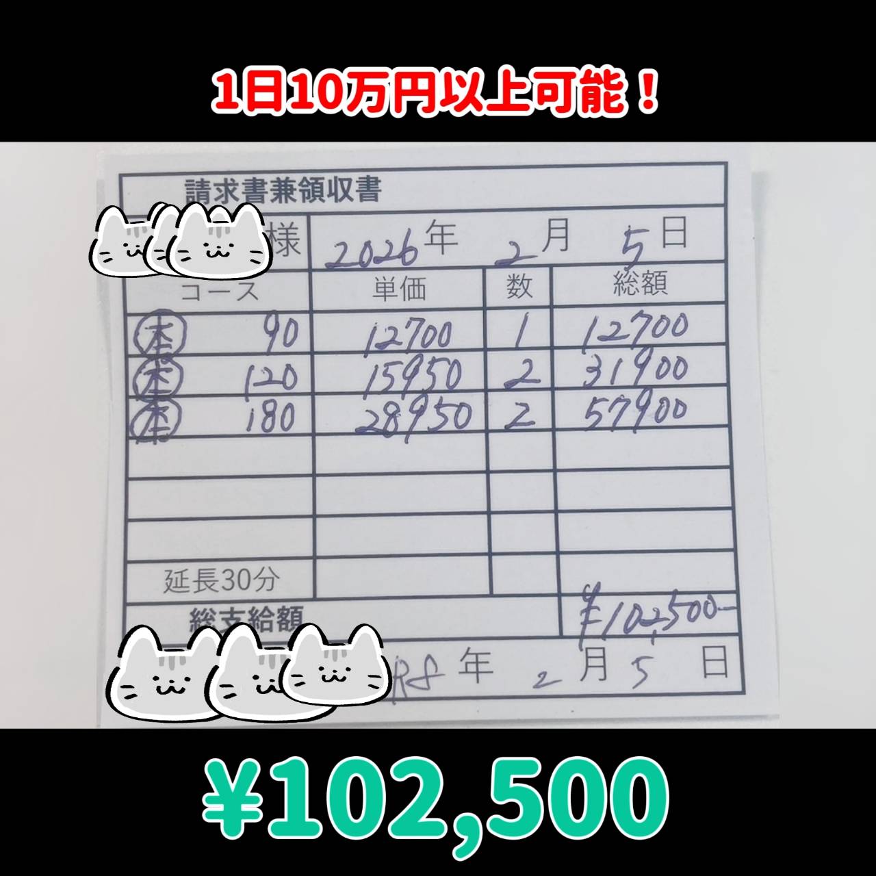 1日100000円接客5〜6本