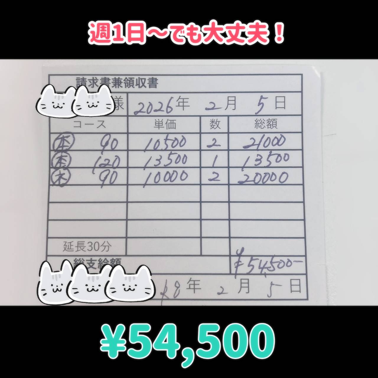 1日55000円接客3〜4本