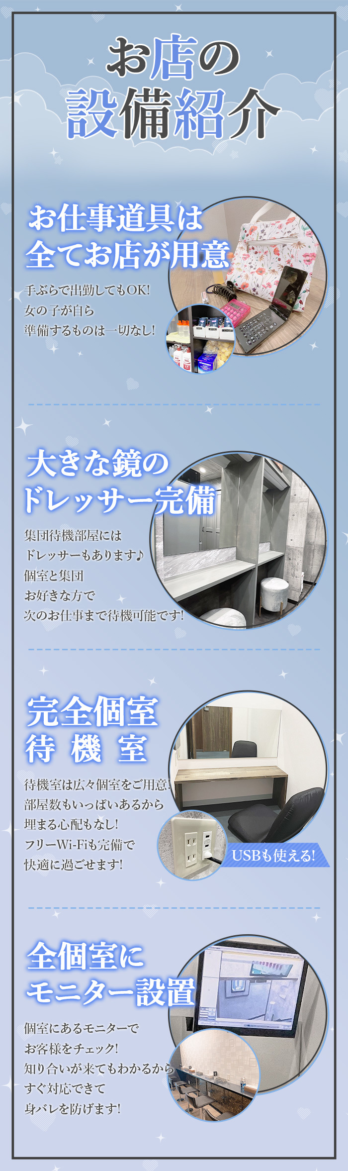 当店では、お客様だけでなくキャストの皆様にも安心して働いていただけるよう