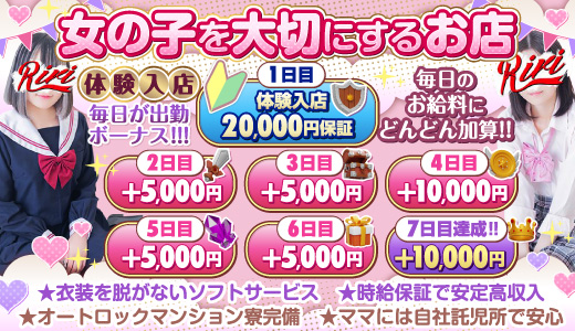 日給35,000円以上 体験入店保証あり/入店祝い金あり/出稼ぎ保証あり/各種ボーナスあり