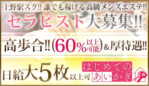 『上野M性感』で検索すると必ず出てくるほどの超有名店♪創業30年以上の信頼と実績♪だから未経験でも安心♪受け身にならずに稼げちゃう♪リアルに連日忙しいので急きょ25歳~35歳の方を緊急大募集いたします♪