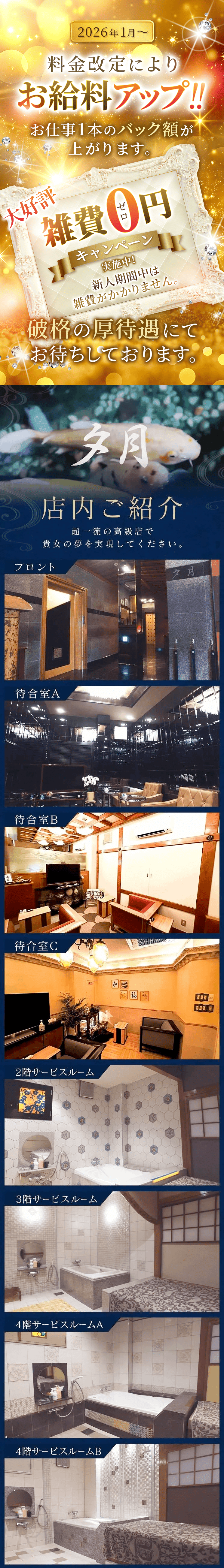 この業界はグレーなお店も多いので、安心して働ける有名なお店がいいと思い、長くお店をやっているところを探していたので、創業50年以上と書いてある夕月はまさに私の理想通りでした。