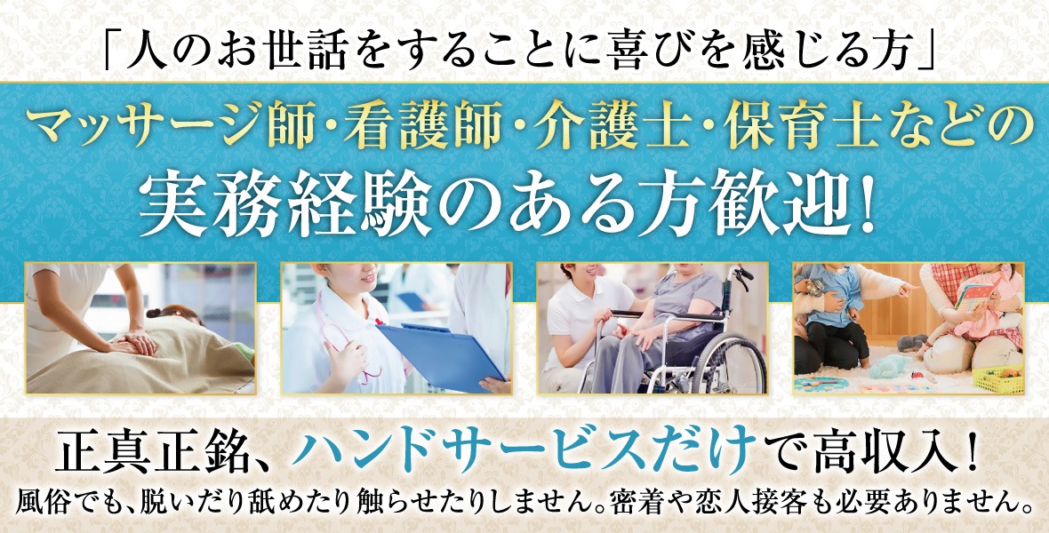 脱がない・舐めない・触らせない!手コキだけで稼げる3ナイハンドサービス店なので未経験でも安心です。