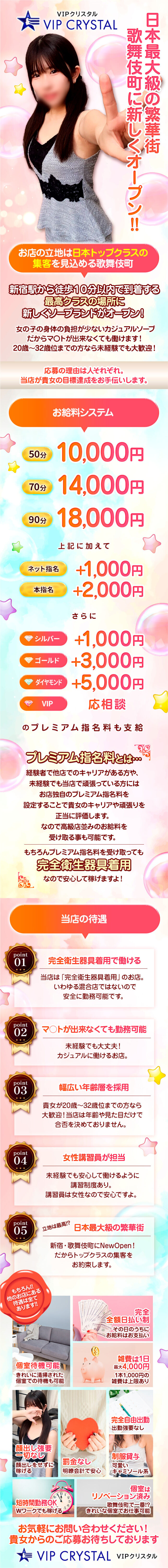 \20歳~32歳まで積極採用!/新宿歌舞伎町のソープがリニューアルオープン★大盛況につき女の子大募集中★完全衛生器具着用・マッ○なしでもOK・女性講習員が教えるので未経験でも安心!