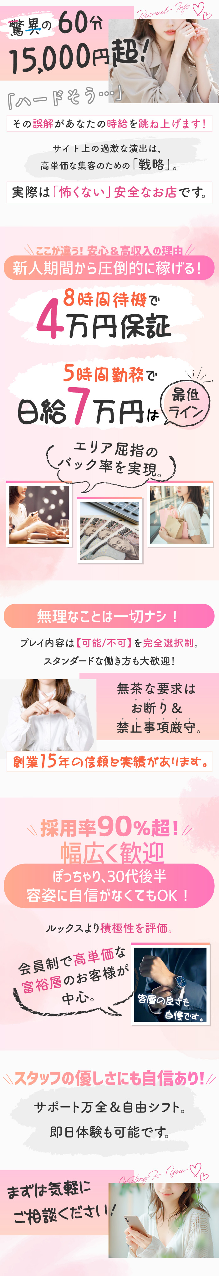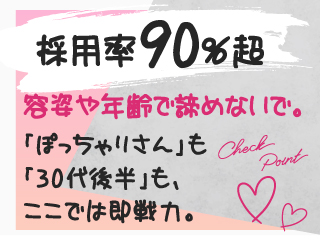 採用率9割超え!容姿に自信がなくても、ぽっちゃりでも、年齢が30代後半でも、高単価で新人期間からずっと稼げるお店です!