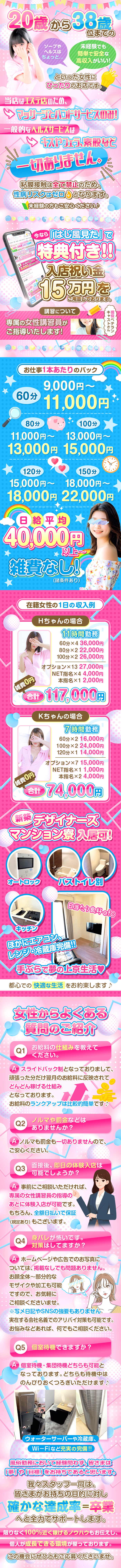 当店は創業10年の本物の有名老舗エステ店です。ムリせず身体へ負担も掛けず、効率よく稼げる環境がございます♪