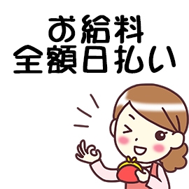完全全額日払いです!思わぬ出費があったときや、欲しいものがあるとき、コツコツ貯金したいなどご応募の目的は人それぞれです、ぜひお気軽にご連絡ください!