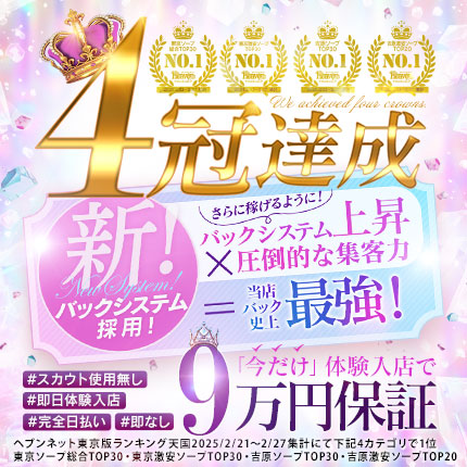 今がチャンス!★入店お祝い金10万円プレゼント中!★さらに体験入店保証9万円実施中!★吉原屈指の人気グループ本店だから、どなたでも短期間でイッパイ稼げます!!