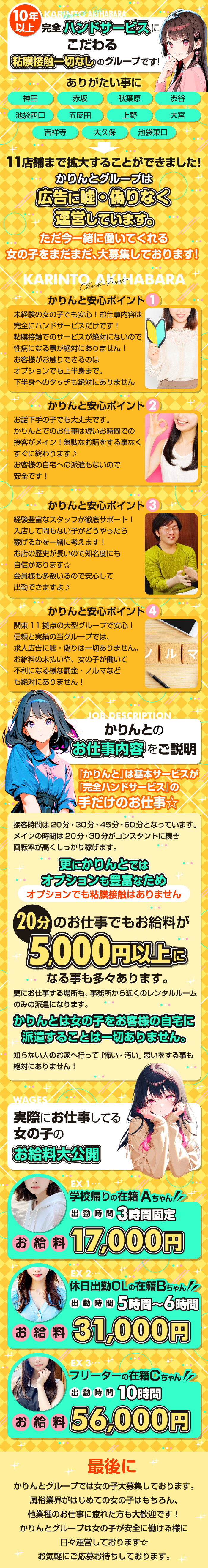 本当に手だけで稼げるお店をお探しなら是非『神田かりんと』へ♪ただいま本当に女の子が足りてなくて積極大募集中になります!