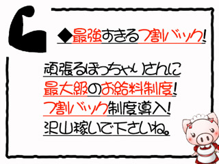 7割バック昇格制度導入。ネット指名も7割バックになると嬉しいですよね。ぽちゃ店での最高料金目指しましょう。