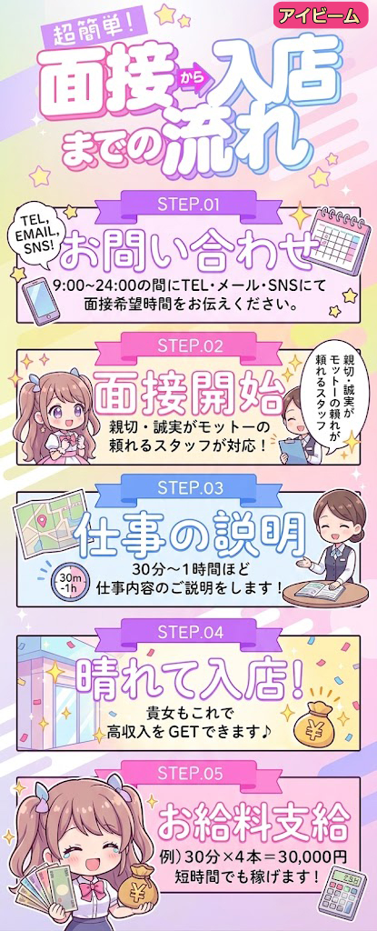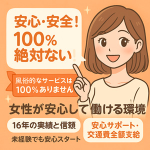 - 18歳以上(高校生不可)の健全な女性※業界未経験の方、学生・OLさん歓迎!