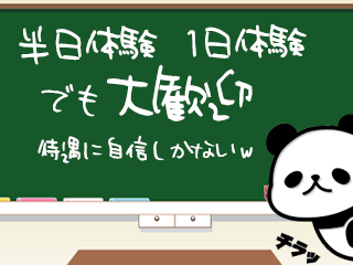 半日体験も大歓迎です♩もちろんその日に全額日払い制です!女の子とお客様がドンドン増えているのでエリア拡大もしています♩