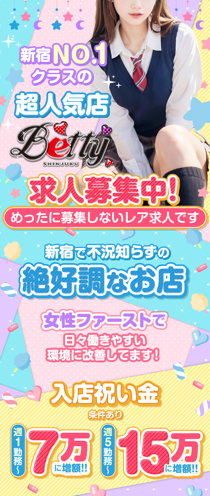 新宿No.1クラスの超人気店!!Betty(ベティー)!!求人募集中!!時給4,000円スタート♪めったに募集しないレア求人です。