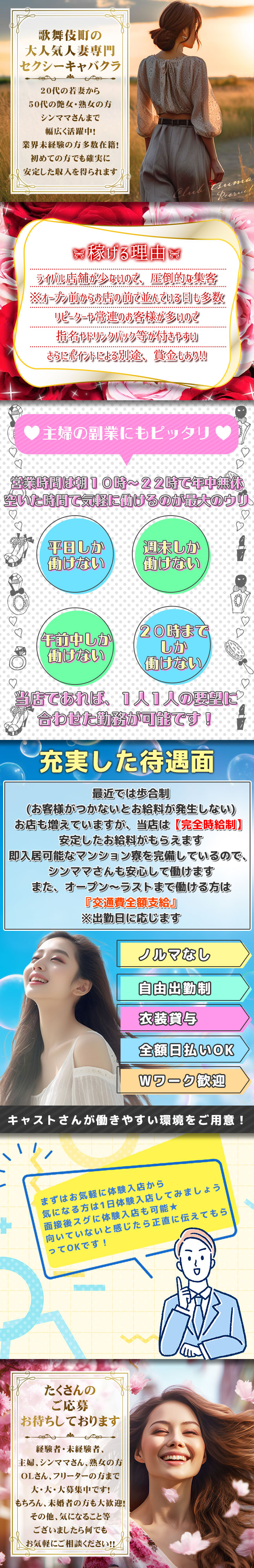 若いキャストさんがほとんどいないので、抵抗なく働くことが出来ています☆