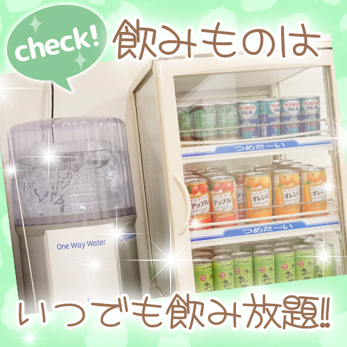 ウォーターサーバーにジュース・お菓子・カップ麺も完備!