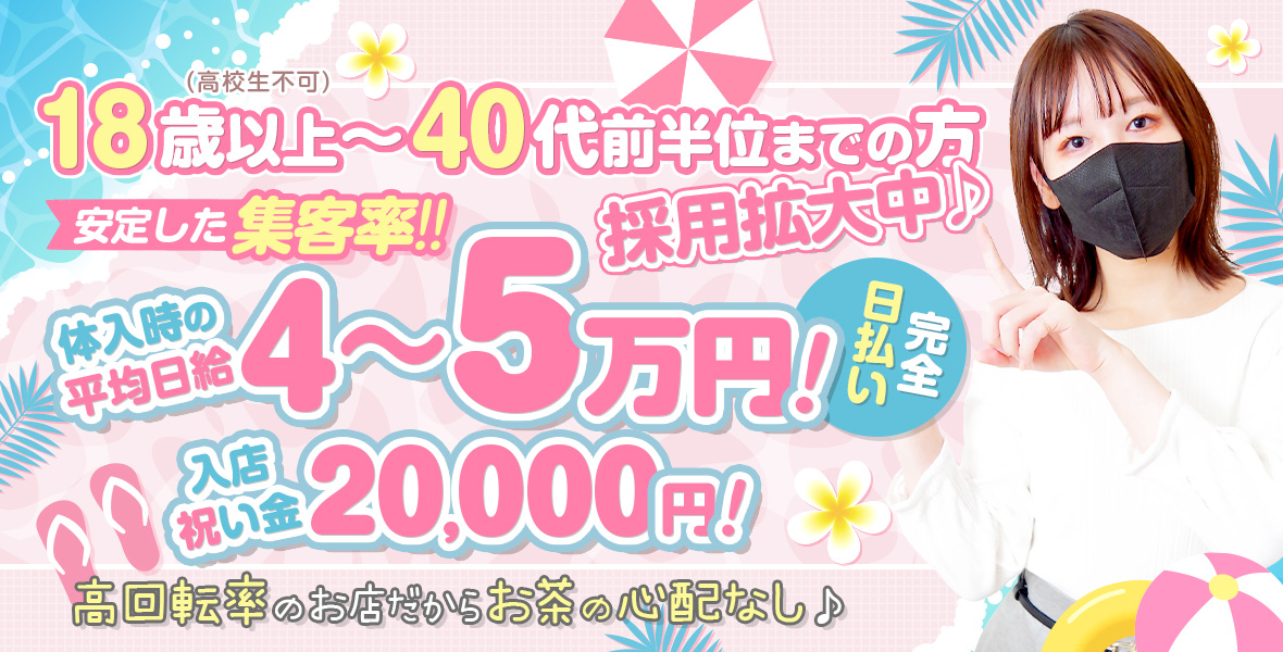 大繁盛につきキャスト大募集♥未経験も容姿不問で大歓迎♥体験入店で祝金2万円プレゼント♥自慢の回転率で「出勤したら絶対に稼がせます!」積極大募集!!
