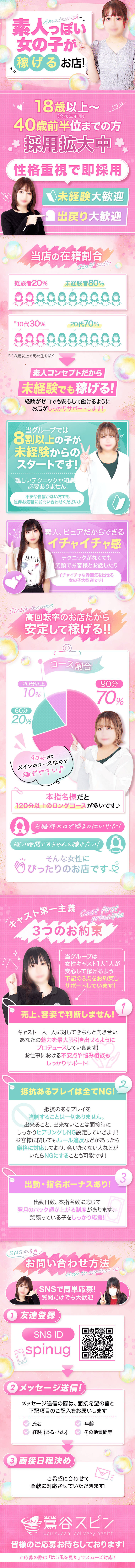 前のお店では1日1,2本か0の日もたまにあったけど、SPINに入ったらいつも4万以上稼げているので嬉しいです。 お客様も優しいタイプの人が多く、前の店と比べて過激な要求してくる人とかいないので元気に働けています。