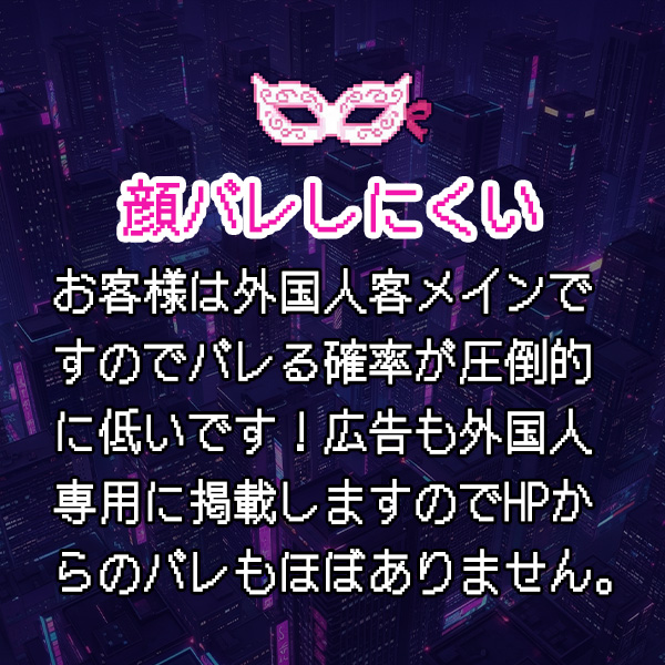 外国人接客メインの【圧倒的にバレにくい】というメリットを活かして