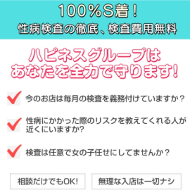 ハピネスグループなら検査費用はず~っと0円☆女の子任せ...のお店ではありません!リスク最小限で安心して働きましょう♪