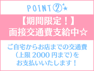 期間内に面接にお越しいただいた方全員に、ご自宅からお店までの交通費(上限2000円まで)をお支払いいたします!