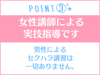 専門の女性講師を使っての講習があるので安心♪新人講習、前立腺講習、確認講習がございます♪