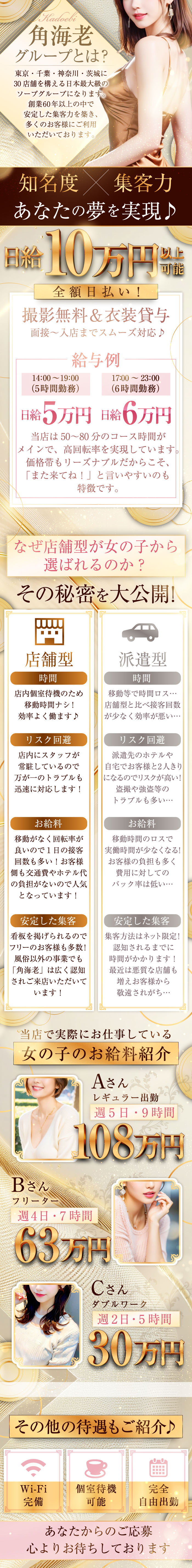 【関東最大級のグループ店】関東各地に30店舗を展開する角海老グループ。創業60年で培った集客力であなたを稼がせます!