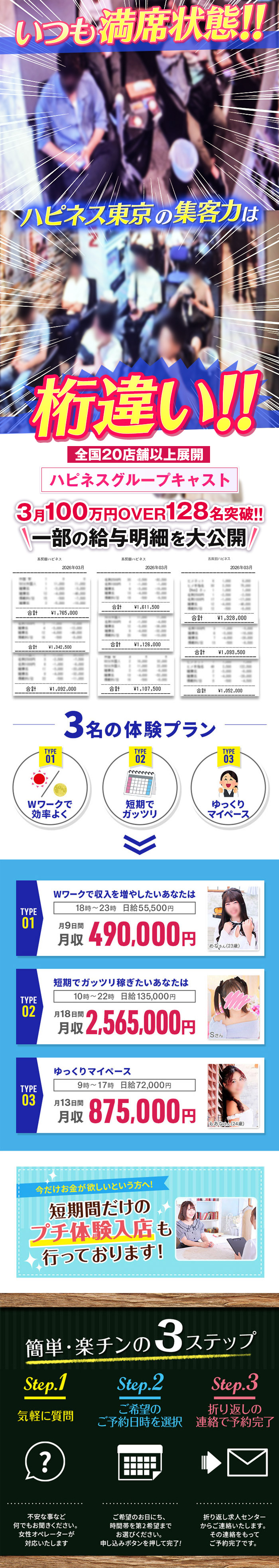 \もっと気軽に高収入♪/1日8万円~10万円稼ぐ女の子もいます!大手ハピネスグループのお店だから衛生管理徹底・女性講師・待遇充実未経験でも安心スタート♪全国から出稼ぎも大歓迎!