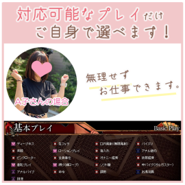 またプレイに関してもご自身の出来ないプレイは、ご予約の際にお客様に説明・了承を頂きますので、プレイ中の強要はございません。