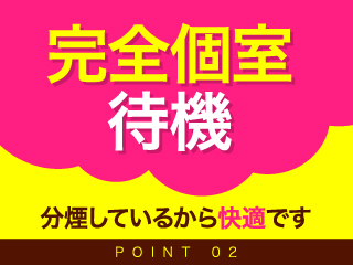 完全個室待機!1人1部屋をご用意◎周りを気にせずリラックスしていただけます。きちんと分煙しているから快適です♪