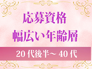20代~40代の幅広い層の女性を大募集♪容姿に自信がなくても大丈夫!内面を重視しますのでやる気のある方はお気軽にお問合せを!