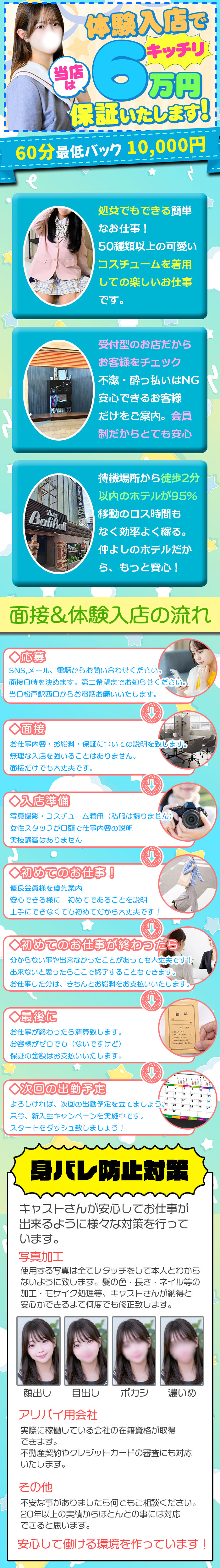 今なら総額6万円の体験入店保証有!他にも本指名数に応じての特典も用意しております♪