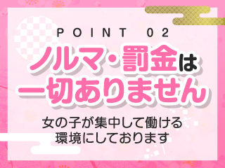 お仕事に集中していただけるような環境づくりをしております。売上や出勤ノルマを廃止し、罰金もなし!