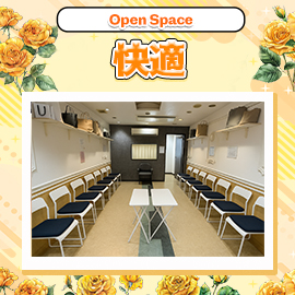 非常に広いスペースを確保しており、オープンスペースの他に個室で待機することも可能です。リラックスして次の接客に備えていただけます。